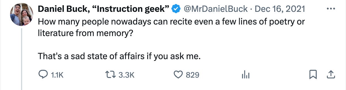 Kennedy quoting Aeschylus off the dome is a far cry from contemporary U.S. politics. However, myself and many of my fellow US citizens remember a time in our politics, not too long ago by the way, wherein it would certainly be conceivable for presidential candidates to reference something akin to the work of Aeschylus. Nowadays, the public has been conditioned to breathe a collective sigh of relief when our president so much as makes it through a coherent sentence without stammering or stuttering. The sentiment is encapsulated quite well in this tweet I found: