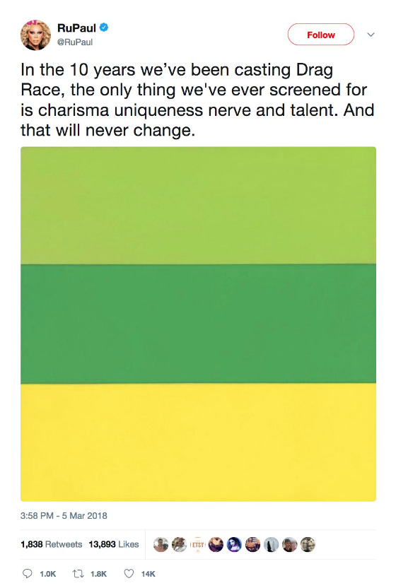 Two days after The Guardian profile is published, RuPaul posts this tweet:
