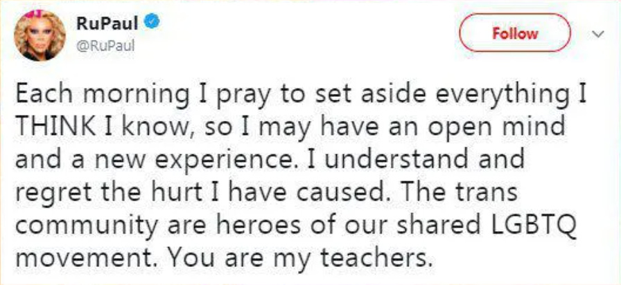 Finally, after doubling down, RuPaul penned an apology: