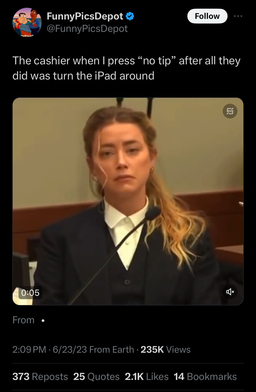 This episode of the Fear& podcast, featuring Jennifer and Angie from I’ve Had It, which echoes some of my thoughts on tipping starting around the 47:40 mark